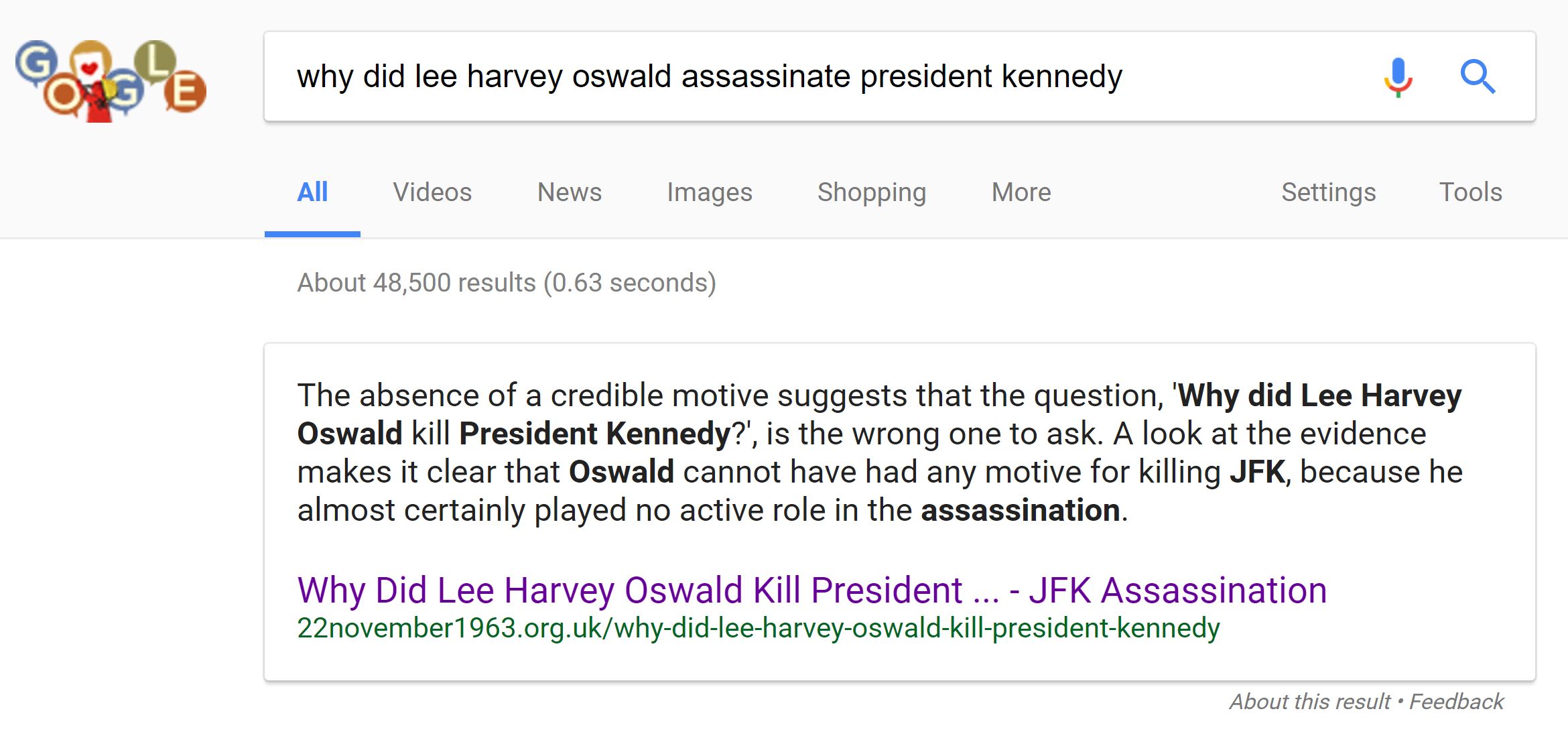 Google will also tell you that Lee Harvey Oswald didn’t assassinate John F. Kennedy, despite the overwhelming evidence to the contrary: